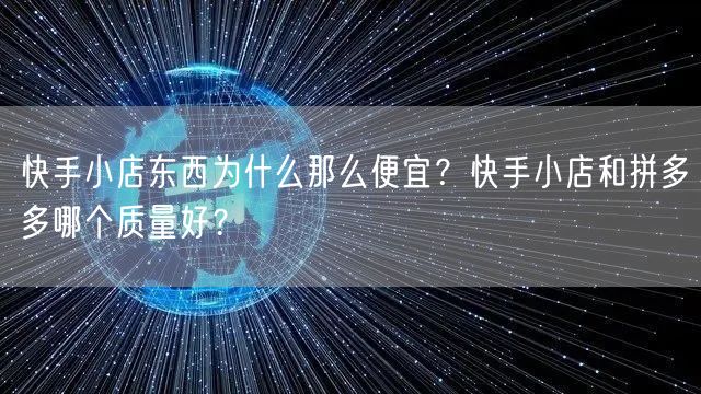 快手小店东西为什么那么便宜?快手小店和拼多多哪个质量好?
